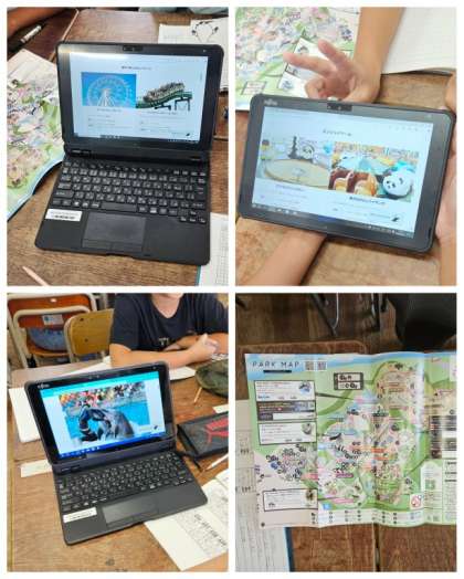 6年生は、来週19日(木)20日(金)が修学旅行です。今日は、アドベンチャーワールドでの過ごし方について、活動班でパークマップやタブレットを使って計画をたてました。ワクワク感が広がってきています。
