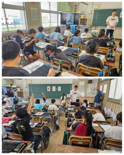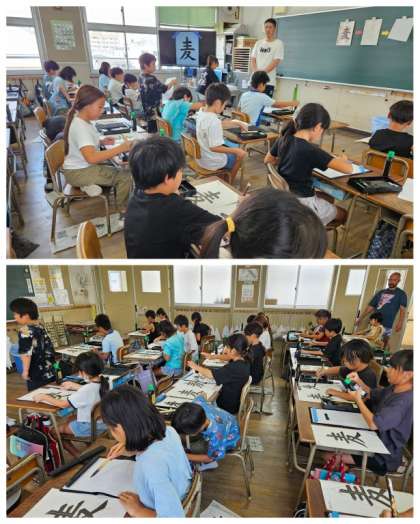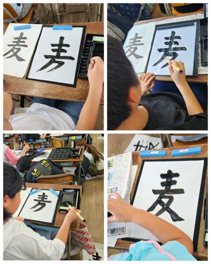 4年生書写の時間は「麦」という一文字を練習して、最後に清書として納得した一枚に名前を書きそえ提出していました。バランスのとりにくい字ですが、姿勢を正し黙々とていねいな筆づかいで書き上げていました。