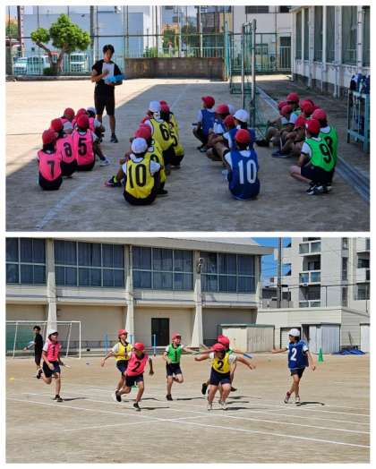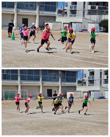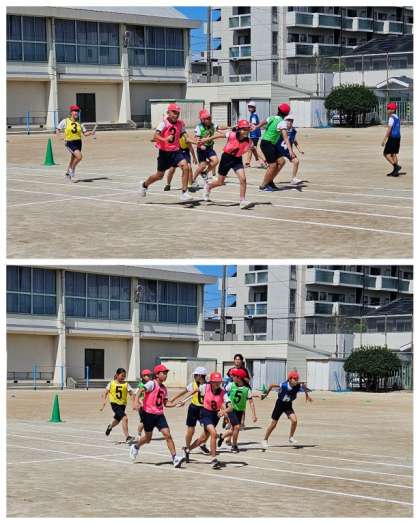運動会の実施日は、暑さを考慮し例年より遅く10月20日(日)を予定しています。今日の6年生体育の授業は、リレーのバトンパスの練習でした。スピードを落とさず、うまバトンがつながるよう練習してました。
