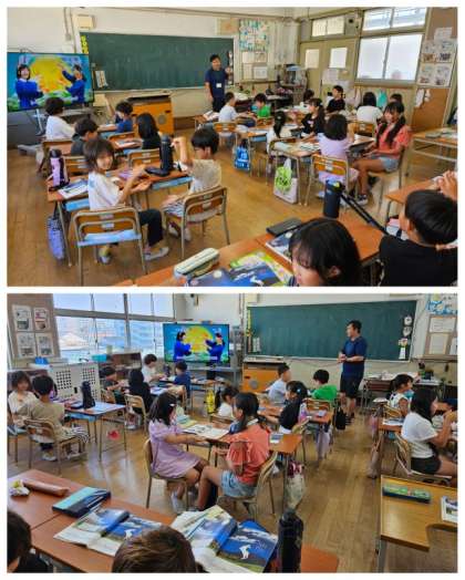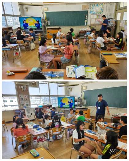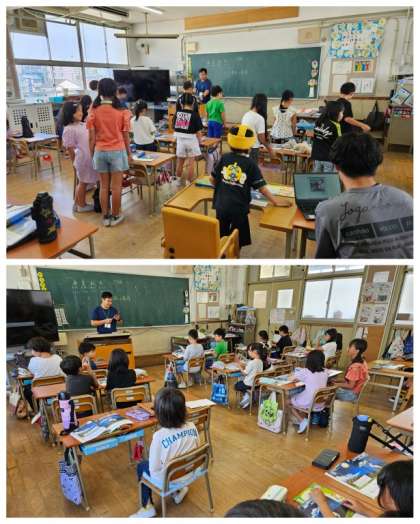 3年生音楽の授業は、今日の『中秋の名月』の日に合わせて「うさぎ」を大きな声で歌ったあとに「十五夜さんのもちつき」。ペアと向かい合って、つき手とかえし手でリズムの速さを変えながら練習していきました。