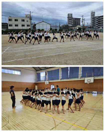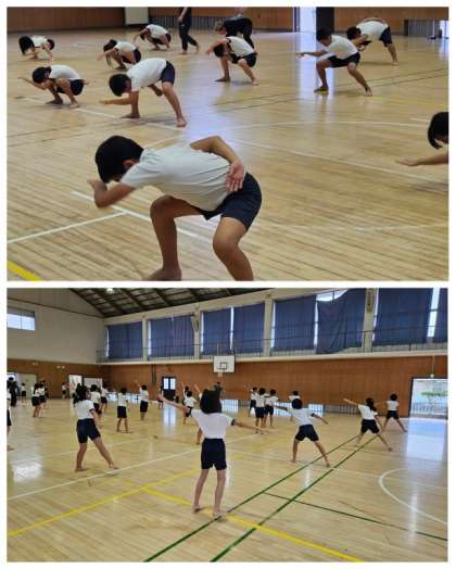 「ドッコイショ、ドッコイショ! ソーラン、ソーラン!」と、威勢の良いかけ声とともに演舞の練習は熱がこもってきました。大きな声の響きだけでなく、みんなの動きも軽やかとなり気合いがみなぎってきました。