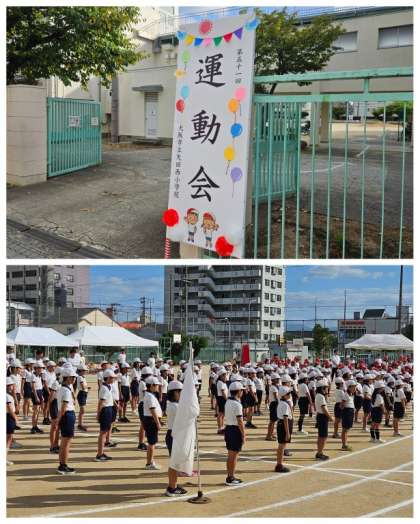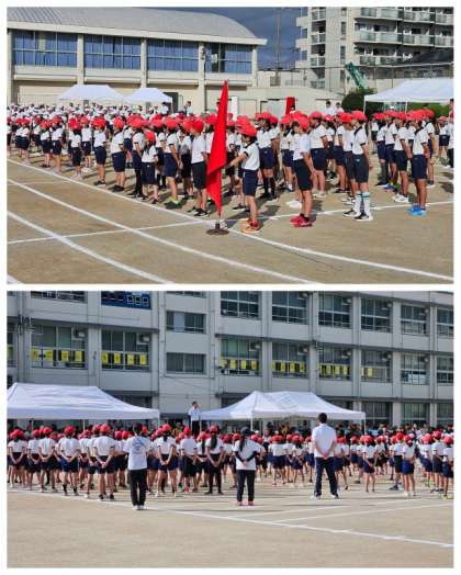今朝からよい天気となり、第51回運動会が開催されました。開会式では、赤組と白組に分かれて整列。開会のことば、校長先生の話、児童ちかいのことば、演技上の注意などが続き、全校児童で運動会の歌を斉唱。その後、プログラム1番はじめの体操を全学年児童が元気よく行いました。