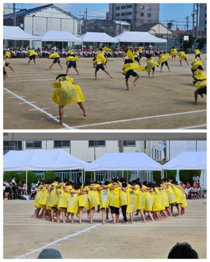 各学年の団体演技に入りました。最初は5年生「西小ソーラン 〜2024〜」、勇ましいかけ声と力強い演技が圧巻でした。続いて2年生「ミラクルをキミとおこしたいんです」、三部構成のダンスでノリノリでした。