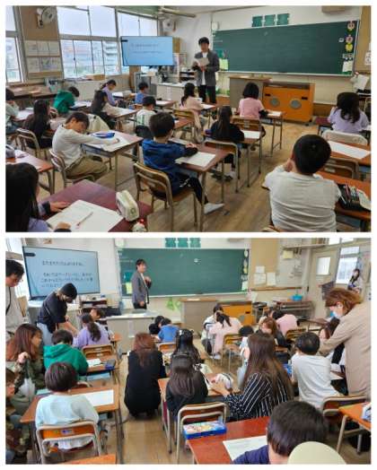 2年生は、これまで周囲の人たちに対して感謝の思いを伝え、人に大切にしようというねらいで「ありがとうカード」を作成し渡してきました。今日の授業では、これまでの取組をワークシートにまとめ発表しました。