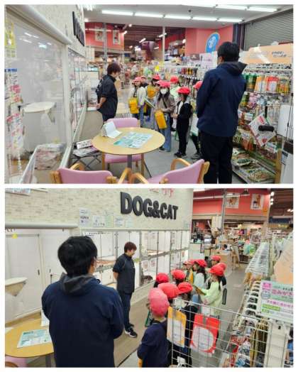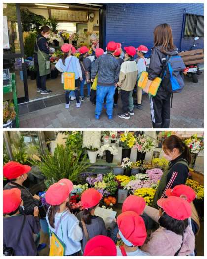 別グループに分かれての町たんけんでは、地域のフラワーショップやペットショップさんへ出向きました。「季節によってちがう花の種類」「商品となるペットの店内飼育法」など、多くの質問に答えてもらいました。