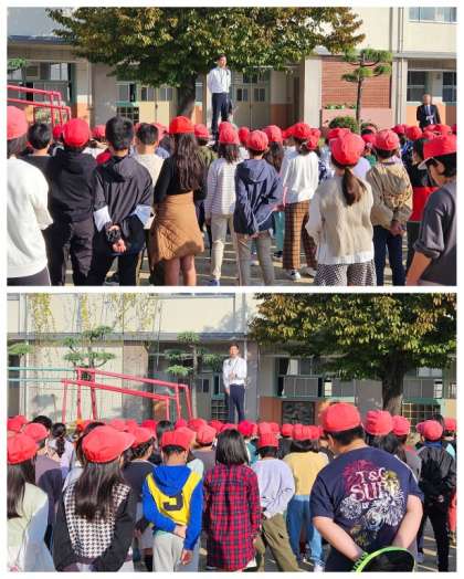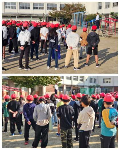 朝には雨があがり、日ざしがふりそそぐなか、児童朝会を行いました。校長先生からは先日の『人権デー』をふり返り、人権について考えるまとめのお話がありました。集会担当の先生からは週目標の話もありました。