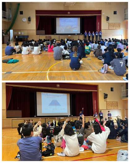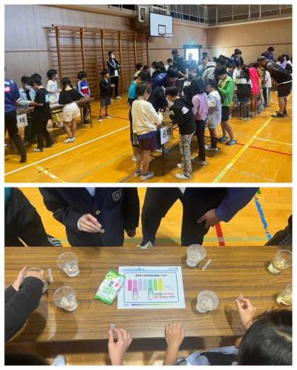 4年生は、矢田4小学校が合同で学ぶ「大和川についての学習会」に参加しました。国土交通省大和川河川事務所の方から、大和川流域の概要と歴史、パックテストで大和川の水質が改善されたことなどを学びました。