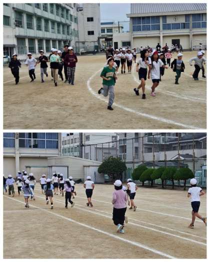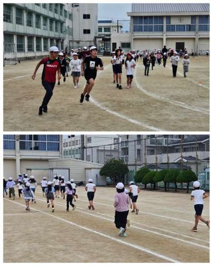 来週、ヤンマーフィールド長居で開催される「ランニング記録会」に向けて、今日の20分休憩時間に2・4・6年生が3回目のランニング集会を行いました。各自がランニングのペース配分をつかんできたようです。