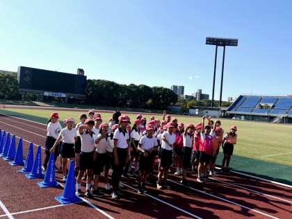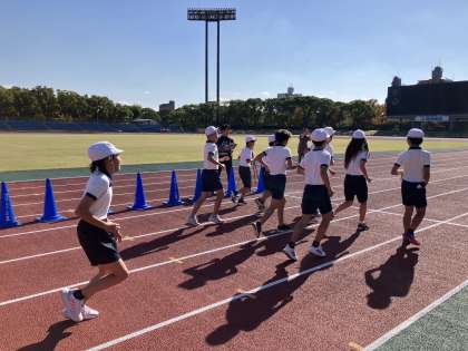 5・6年生は、トラックを5周。練習の成果と持久力が必要な距離で、児童たちが互いに気合いを入れて臨みました。最後は、額に汗をにじませながら全員が無事にゴールし、今までの記録を更新する児童もいました。