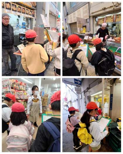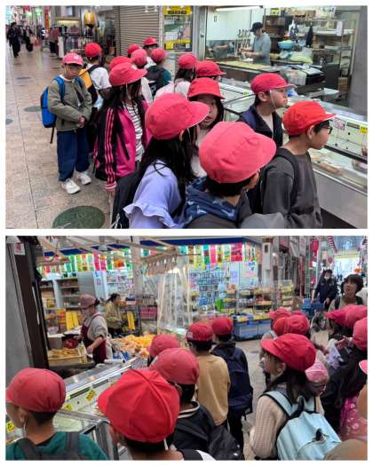 3年生は、区内の駒川商店街へお店屋さんの見学に行きました。グループごとで各店舗を訪れてあいさつし、仕事の内容についてあらかじめ用意した質問に答えてもらってました。働くことの大変さも感じたようです。