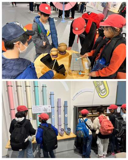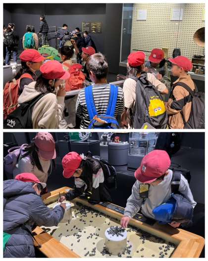 午後からは館内見学の時間でした。4階は「科学の探究」、3階は「物質の探究」、2階は「みんなでたのしむサイエンス」。各フロアでは、展示物に興味を示し、科学の不思議にふれる体験をすることができました。