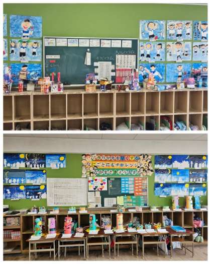 教室や廊下には児童の作品が飾られています。今日から19日(木)までが懇談会です。担任から今学期をふりかえって学習面や生活面で頑張ってきた様子をお伝えして、成長のあゆみを保護者の方と共有しています。
