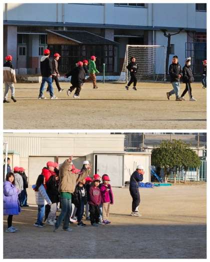日ざしが届くものの空気が冷たく感じます。今朝は、年明け初めての児童集会でした。中運動場や北運動場では「ケイドロ」で走り回り、講堂や体育館では「ドッチボール」「長なわとび」などで楽しく活動しました。