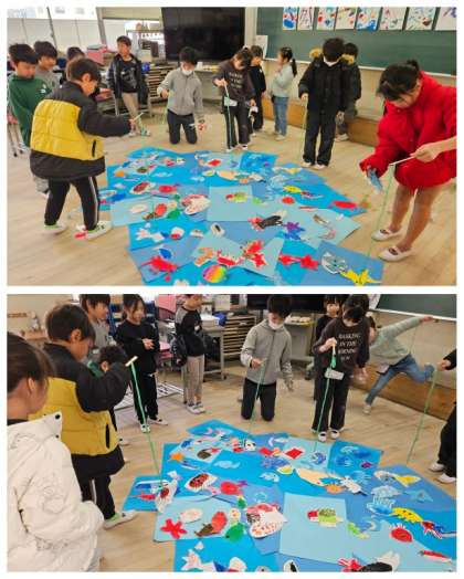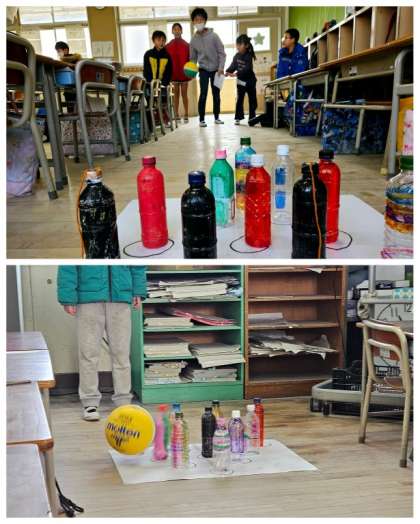 1年1組は「さかなつりやさん」、1年2組は「にじいろばくだくボーリング」、2年1組は「トレジャーハッピー」でした。各クラスへの移動は、各班の6年生が引率しみんながともに楽しそうに活動していました。