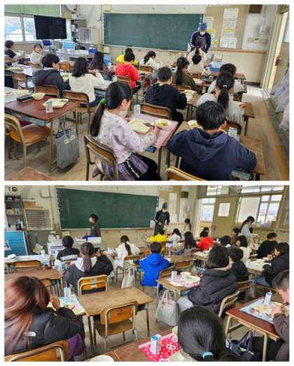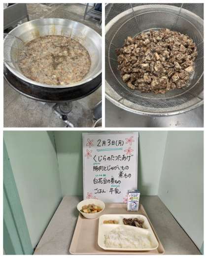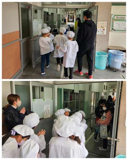 児童朝会で給食委員会の代表児童から連絡があったように、今日から2月7日(金)までが矢田西小の「学校給食週間」です。給食にたずさわる方々に感謝の気持ちを込めてあいさつをし、おいしくいただいています。
