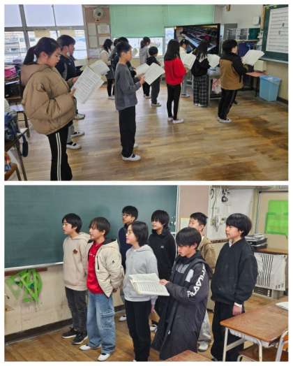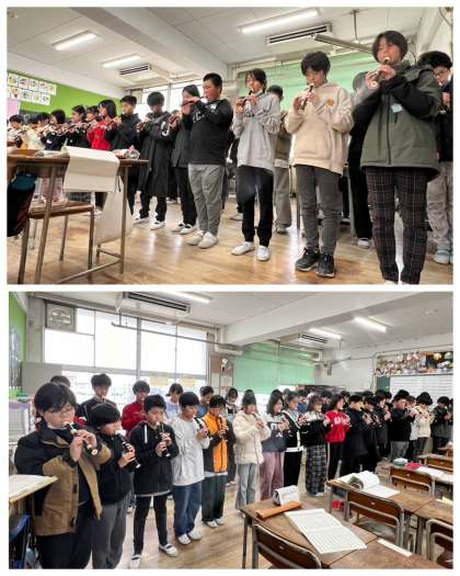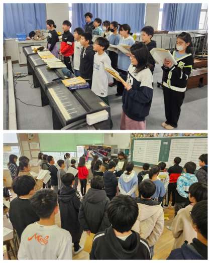 6年生音楽の授業は、卒業式で歌声を響かせる混声合唱曲〜♪正解♪〜の練習でした。最初に主旋律をリコーダーで演奏した後、ソプラノ・アルト・テノールの三部に分かれてのパート練習にも熱がこもってきました。