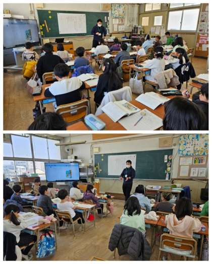 3年2組の国語の授業は、物語「ゆうすげ村の小さな旅館」でした。時を表す言葉から場面ごとの出来事や内容をたしかめ、物語のしかけのおもしろさを読み取って発表し合い、各自でプリントに整理していきました。