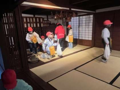 展示場を見学しました。昔の街並みが再現されており、子どもたちは目を大きく見開いて、めずらしそうに眺めていました。