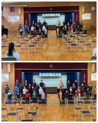卒業式まで1週間となりました。今日は、初めて5年生も同席して卒業式の練習を行いました。式次第にそって流れを確認しながら進行し、厳粛な中で児童のきびきびした動きや大きな声の歌声が講堂に響いてました。