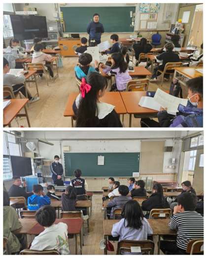 修了式後の各教室では「個人の机やいす、ロッカーのふき掃除」「通知表や修了証、健康診断の記録などの配付」「1年をふり返って各自の発表や、担任からのメッセージ」など、学年最後の学級活動をしていました。