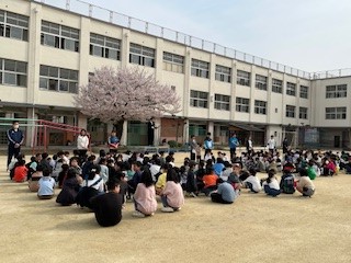 校長先生より担任の先生が発表され、歓声が上がっていました。その後、各学年に分かれて組み分けの発表もありました。