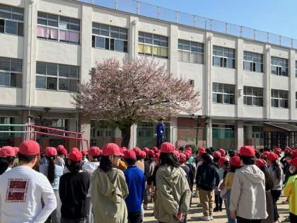 今朝の児童朝会は今年度最初の朝会でした。校長先生からは学級の目標を達成するために日々、自分がどうすべきかを考えるようにしようというお話。また、担当の先生からは週目標のお話や運動場での遊び方についてのお話もありました。