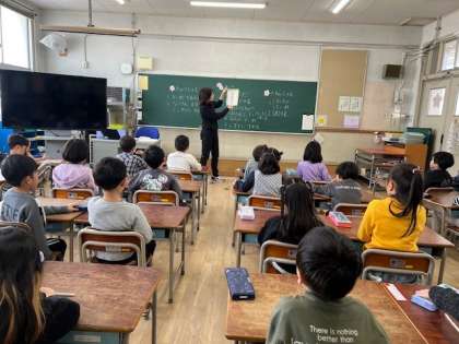 1年生の学習です。机に貼ってある自分の名前をお手本にしながら、ゆっくりと丁寧に書いていました。「す」や「な」など、鉛筆をくるりと動かす文字は難しそうにしていましたが頑張っていました。