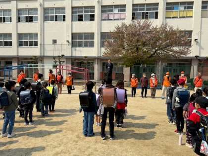 本日の5時間目は地区別で集まり、安全な下校の仕方について話し合いました。その後、いつも登下校を見守ってくださっている「見守り隊」の方々との対面式を行い、児童達と一緒に下校をしてくださりました。