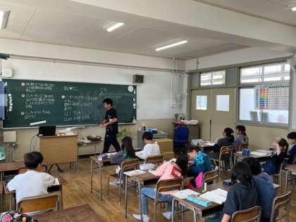 3年生の算数科の様子です。「同じ数ずつ分けるときの一人分の数のもとめ方」を考えました。わり算を学習する前の段階でしたので、子どもたちからは、かけ算やひき算を使って答えを導き出していました。その後、わり算「÷」を学習しました。