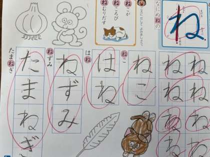1年生の国語科の様子です。「な」と「ね」のお直しをしていました。ゆっくりと丁寧に「直し」の部分をなぞっていました。まるで息を止めているかのように、真剣に取り組んでいました。