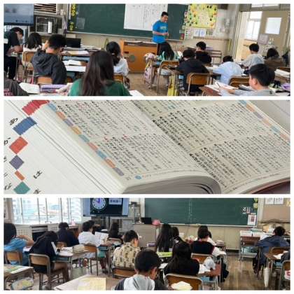 4年生の国語科の様子です。意味調べや説明文全文を「はじめ・中・おわり」に分ける学習していました。また、筆者が示す「問い」の段落を見つけていました。