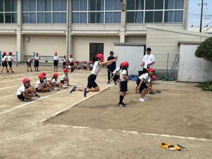 2年生と5年生のスポーツテストの様子です。ソフトボール投げでは、5年生が2年生にコツを教えてあげる姿が見られました。みんな、ベストを尽くして記録を伸ばそうと頑張っています。