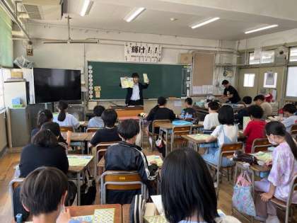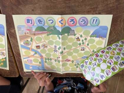 6年生は、納税協会の方を講師に招いて租税教室を行いました。最初は、アニメで税金がなくなると困ることについて学び、最後は「町をつくろう!」シートに町づくりシールを貼り、くらしと税について考えました。
