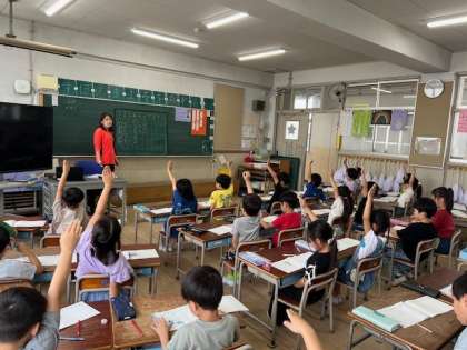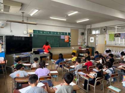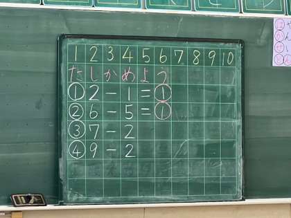 1年生の算数科の様子です。これまで学習した一桁のひき算の振り返りを行っていました。「=」の場所を確認しながら、丁寧にノートに問題を書き、答えを導き出していました。「グー・ペタ・ピン」を合言葉にとても良い姿勢でした。