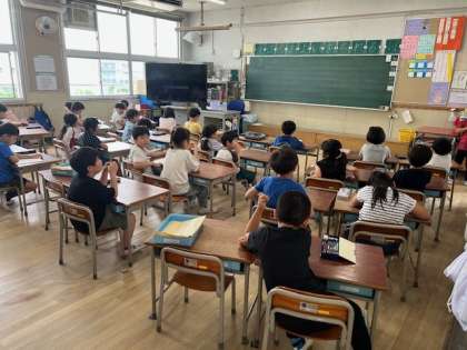 本日から9月末まで熱中症対策として児童朝会は放送で行います。子どもたちは、教室でお話を聞くことになります。今日は、校長先生からプール開き・教室での過ごし方・公園のゴミについてのお話がありました。