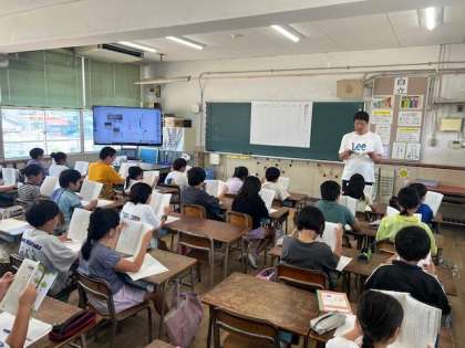 5年生の国語科の様子です。教科書を持ち、良い姿勢で一斉読みをしていました。今後は要点をまとめながら「新聞の役割とは何か?・読み比べるとどんなことがわかるのか?」などの内容を読み取っていきます。