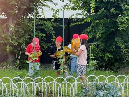 2年生の生活科の様子です。学習である「もくもくひろば」で育てている「ミニトマト」や「ピーマン」などを観察しました。葉や茎の色、実の大きさをよく見て、記録することができました。
