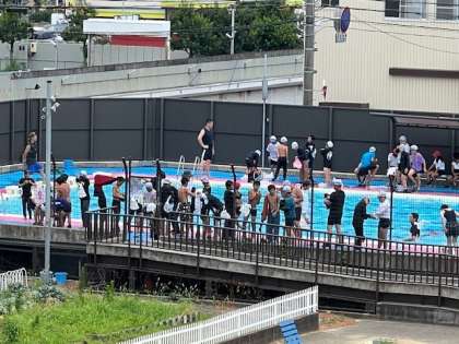 今日の3〜6年生の水泳の授業は「着衣水泳」でした。衣服を着て水の中を歩いたり泳いだりして、動きづらさを体感しました。また、力を抜いて浮いてみたりしながら、水難事故における命を守る行動を考えました。