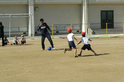 サッカーの楽しさやチームワークの大切さを、体験を通して感じることのできる2時間になりました。お互いのことを考え、協力することが、とても楽しくて素晴らしいことを肌で感じられたのではないかと思います。今後の学校生活にも大いに生かしてもらいたいと思います。