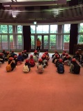 子どもたちは6時に起き、朝の集いを行いました。