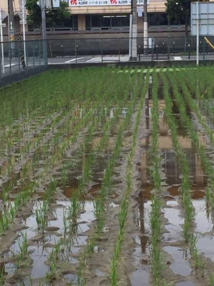 苗が伸びていてびっくりしました。自分たちが植えたときは、がたがただったけれど、まっすぐになっていて驚きました。直してくださってありがとうございます。緑が濃くなっていって成長を感じました。