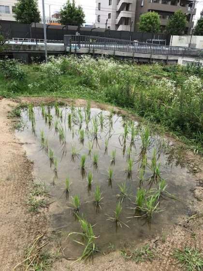 先日、ビオトープを活用したワークショップで田植えをしました。