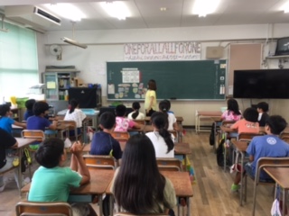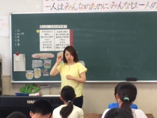 栄養教諭の石見先生に「よくかんで食べよう」というテーマで授業をしていただきました。