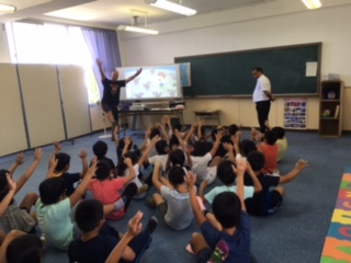 C−NETバイラ ラワット先生とのティームティーチングの英語の授業です。ゲームをまじえた楽しい授業でたいへん盛り上がりました。