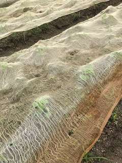 4年生の田辺大根が早くも発芽し、鳥よけネットを押し上げています。強い生命力を感じます。