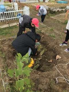 田んぼでは冬支度です。稲刈り後の田んぼを子どもたちが耕してくれました。