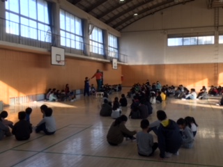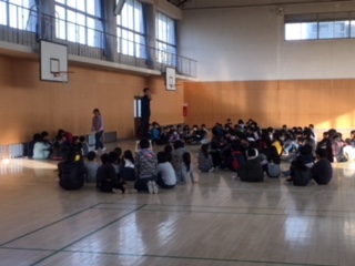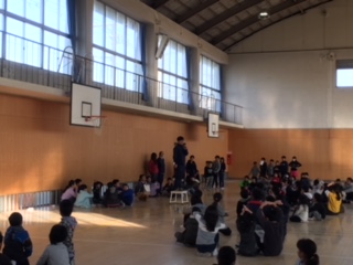 今日は、6人の先生から、3択クイズが出題され、たてわり班で答えを考えました。