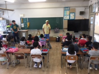 子どもたちの主に下校時を見守ってくださる東住吉区役所のラビット隊の方々と1年生との顔合わせを行いました。
