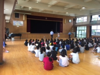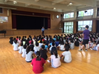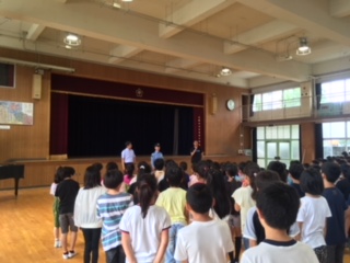 校内に不審者が侵入したことを想定した、訓練を行いました。みんな真剣に行動し、しっかりお話を聞くことができました。