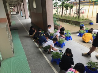 葉の形をスケッチし、これからきれいな花が咲くように間引きをしました。